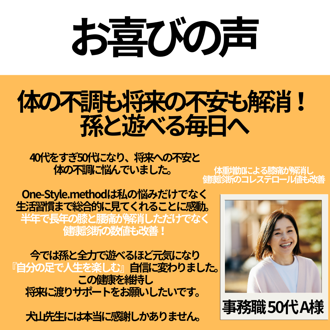そのために、個別最適化、科学的根拠、持続可能なアプローチにこだわった「One-Style.method」を提供しています。