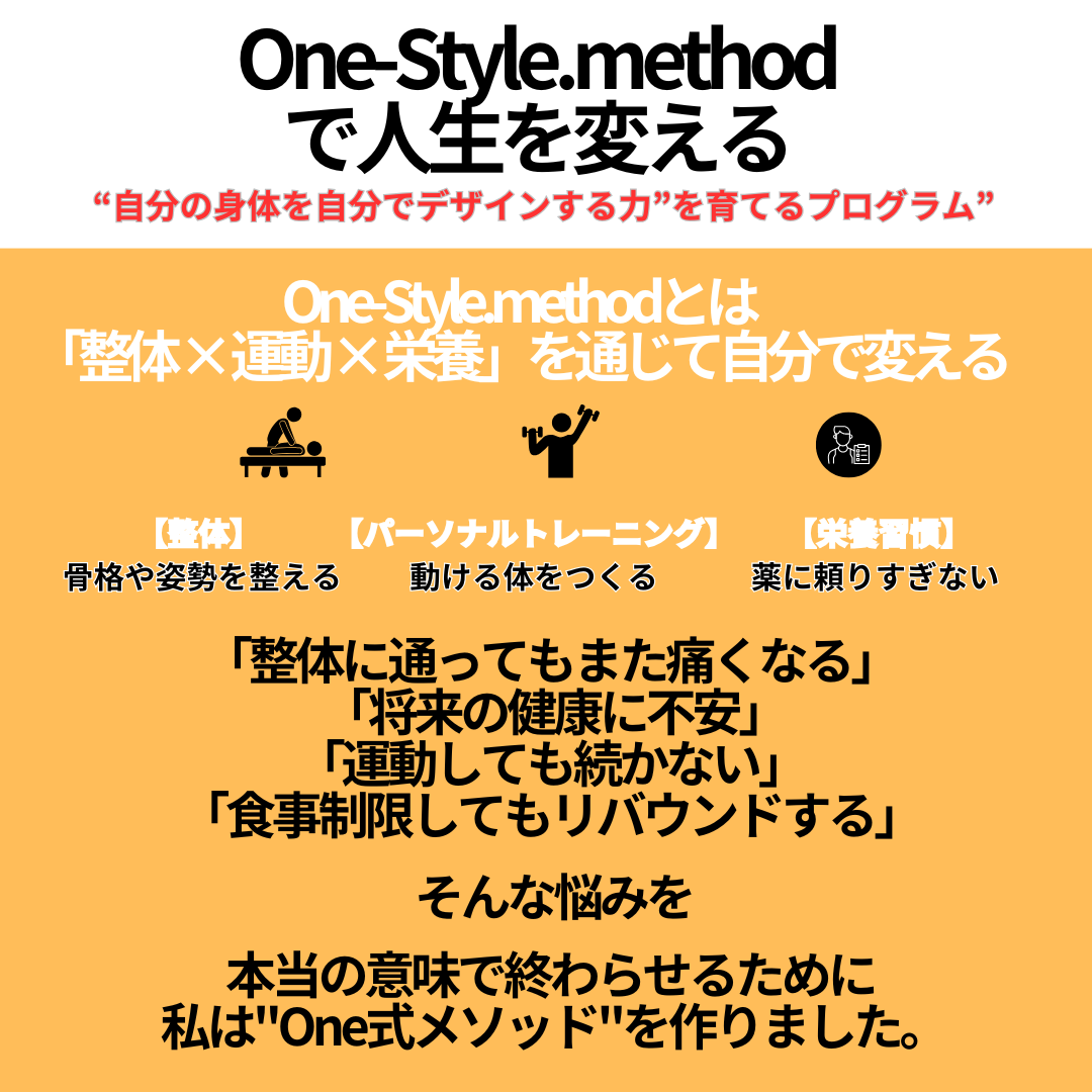 当院は単なる整体×パーソナルではなくOne式メソッドを提供しております。